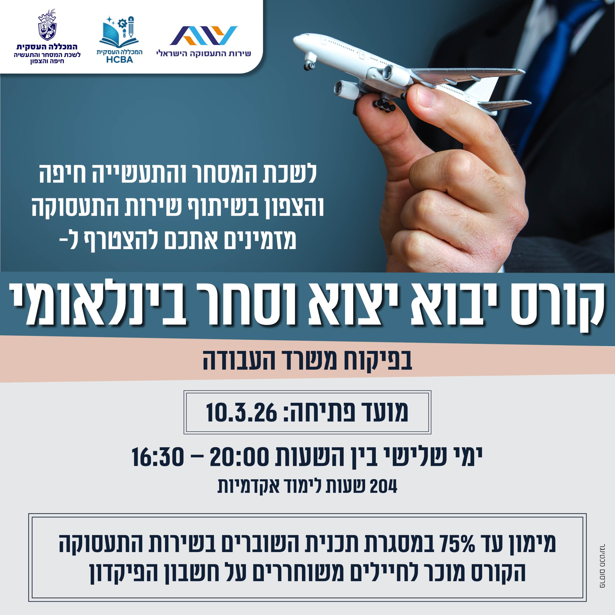 המכללה העסקית של לשכת המסחר והתעשיה חיפה והצפון שמחה להודיע על פתיחת קורס יבוא יצוא וסחר בינלאומי בפיקוח משרד העבודה.