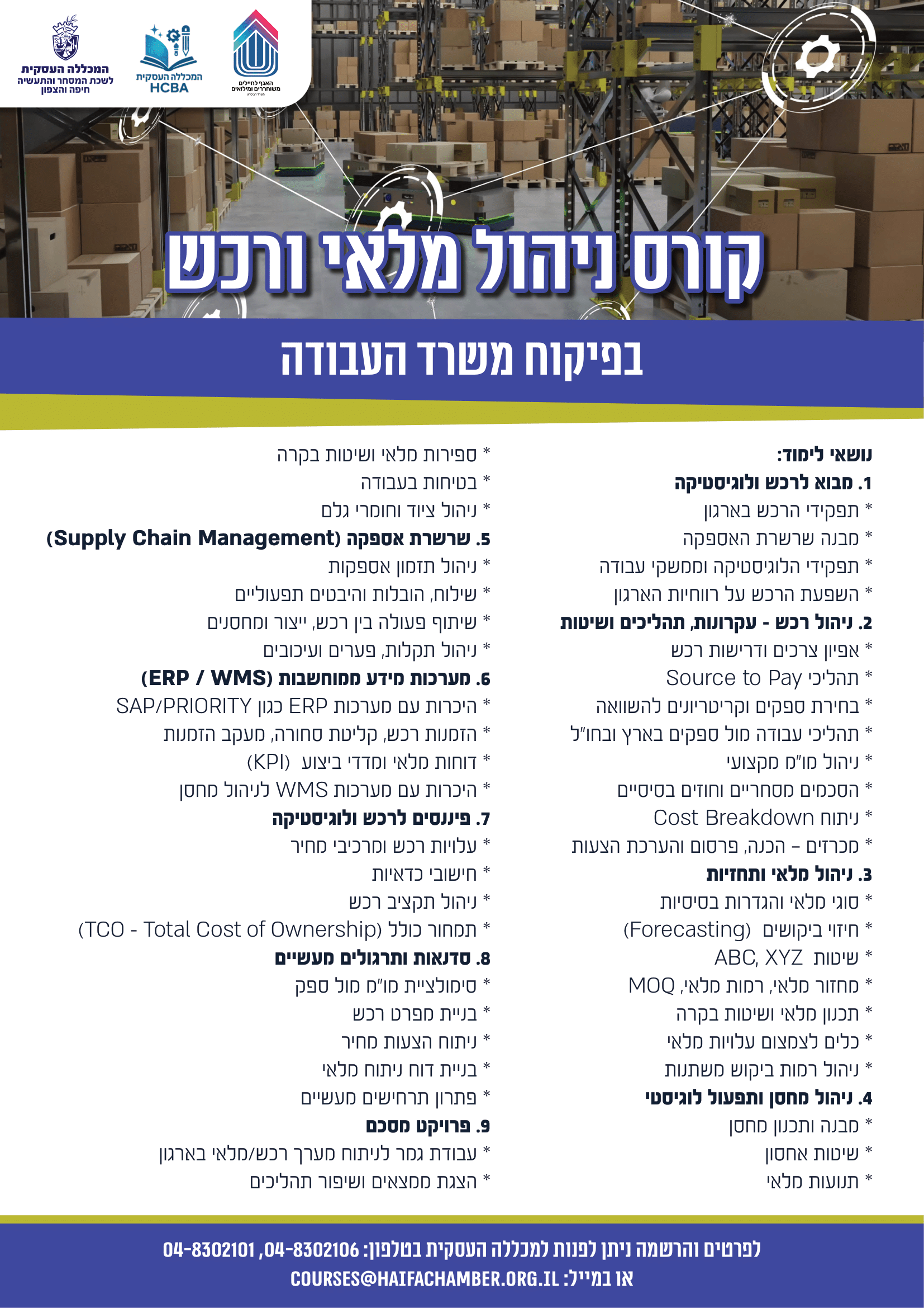 בנוסף, קיימים קורסים בלמידה מרחוק (אונליין) או בפורמט היברידי – כדי לאפשר גמישות מירבית.